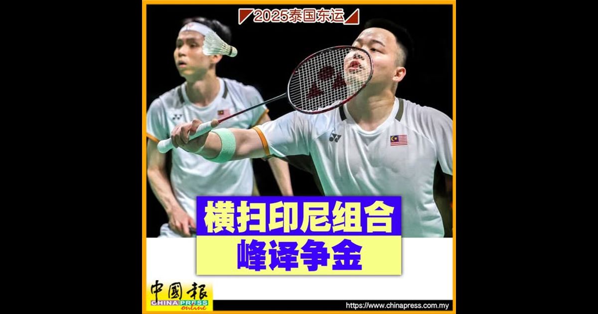 (泰国.曼谷13日综合电)直落两局淘汰印尼的里奥与巴卡斯,马来西亚头号种子谢定峰与苏伟译杀进2025泰国东运羽球男双决赛。