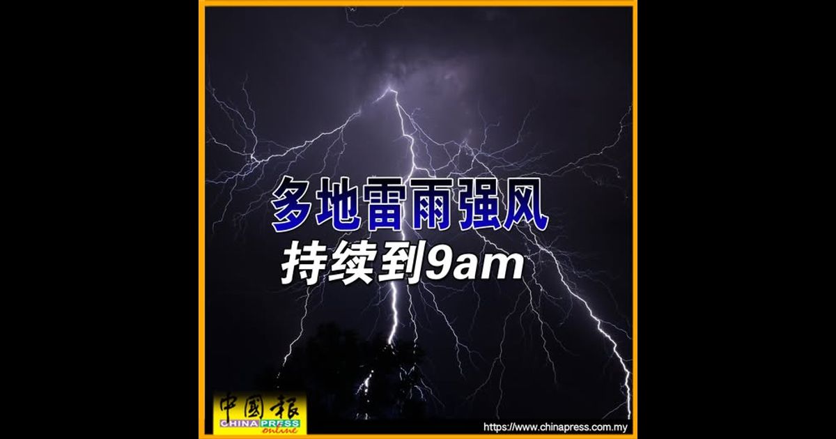 (吉隆坡17日讯)气象局预测,吉打、霹雳、中马和南马多地将有雷雨和强风,料持续到早上9时。
