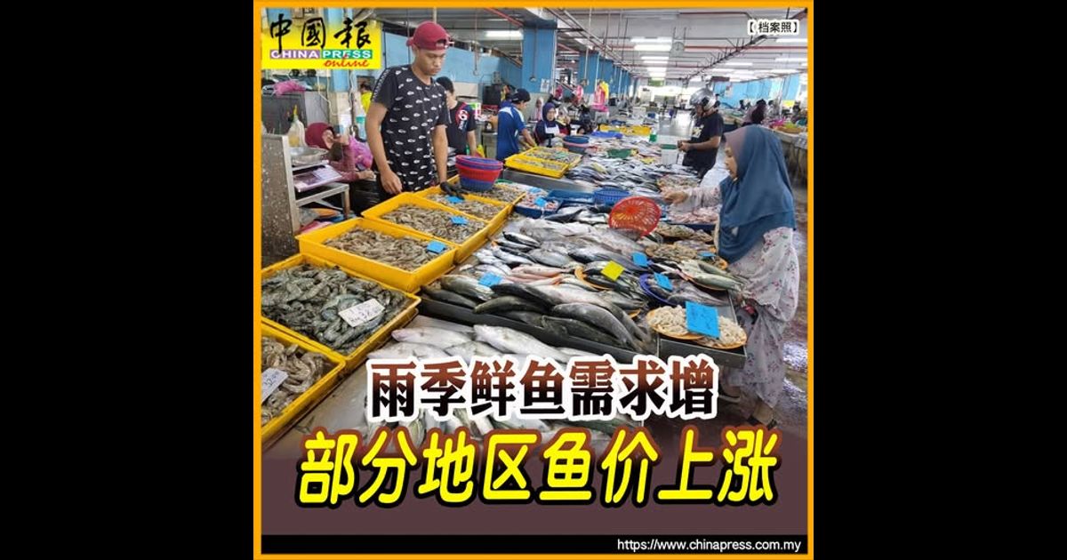 根据报导,东北季候风从11月中旬起持续至翌年3月,在这期间由于受到天气影响,鱼价通常上涨30%至45%。例如大尾甘望鱼价格,此前在吉隆坡大部分超市的售价为每公斤17至18令吉,现售23至25令吉。
