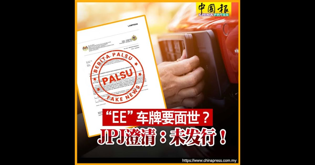 (吉隆坡17日讯)陆路交通局指出,该局从未发行或使用社交媒体上流传的“EE”车牌编号系列。