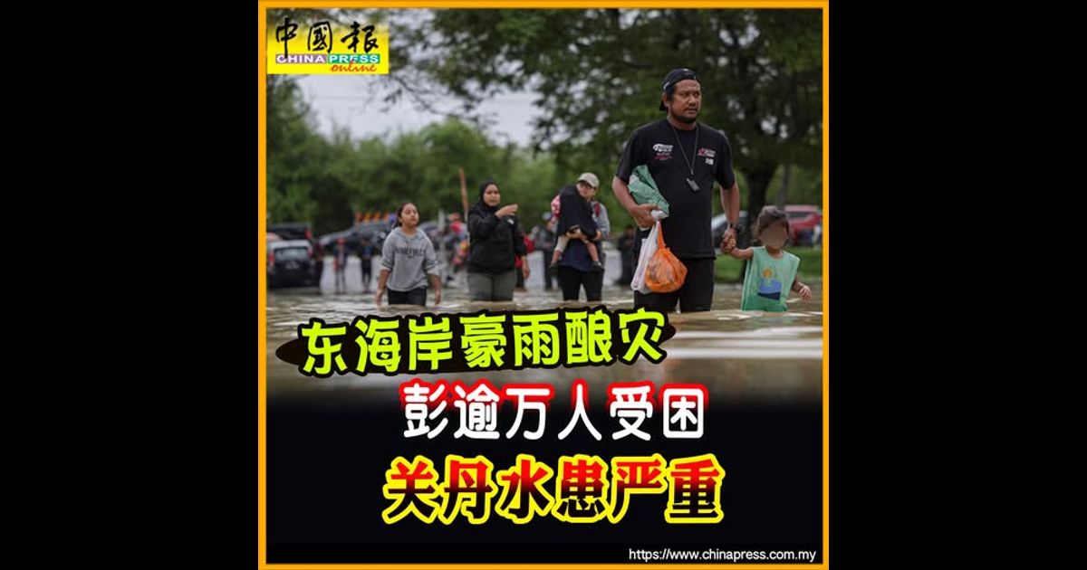 (关丹、哥打峇鲁、瓜拉登嘉楼18日讯)冬至前豪雨量太多,东海岸3州再传灾情,其中以彭州灾情最为严重,灾黎人数已破万,关丹严重沦陷,9219人被逼离开家园!