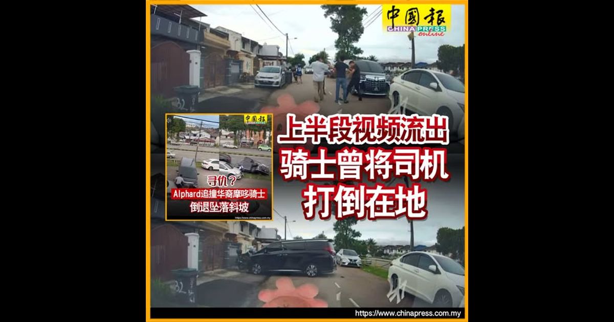 根据社交媒体上流出的另两段相信是在Alphard休旅车司机撞摩哆前的视频显示,丰田Alphard休旅车华裔司机与摩哆华裔骑士在住宅区的小路上,大打出手的画面。