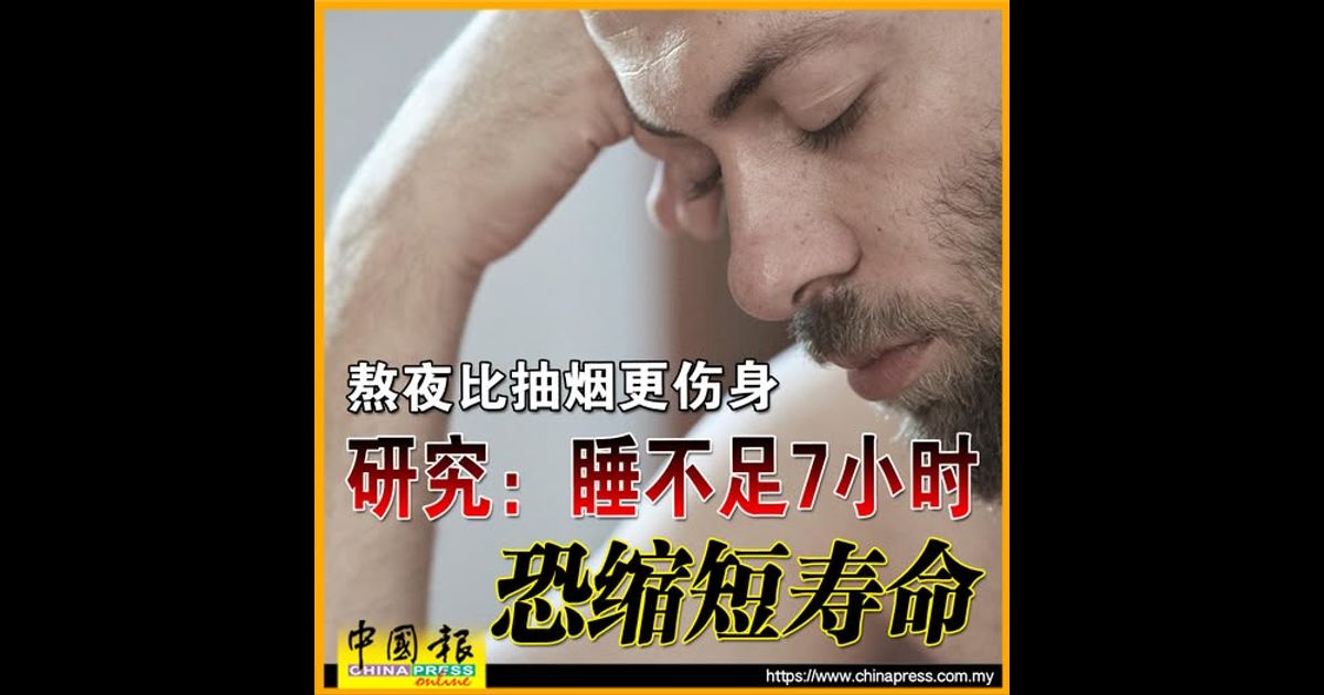 熬夜比抽烟更伤身 研究:睡不足7小时恐缩短寿命