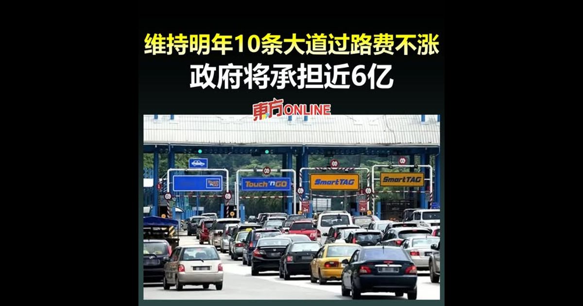 维持明年10条大道过路费不涨 政府将承担近6亿