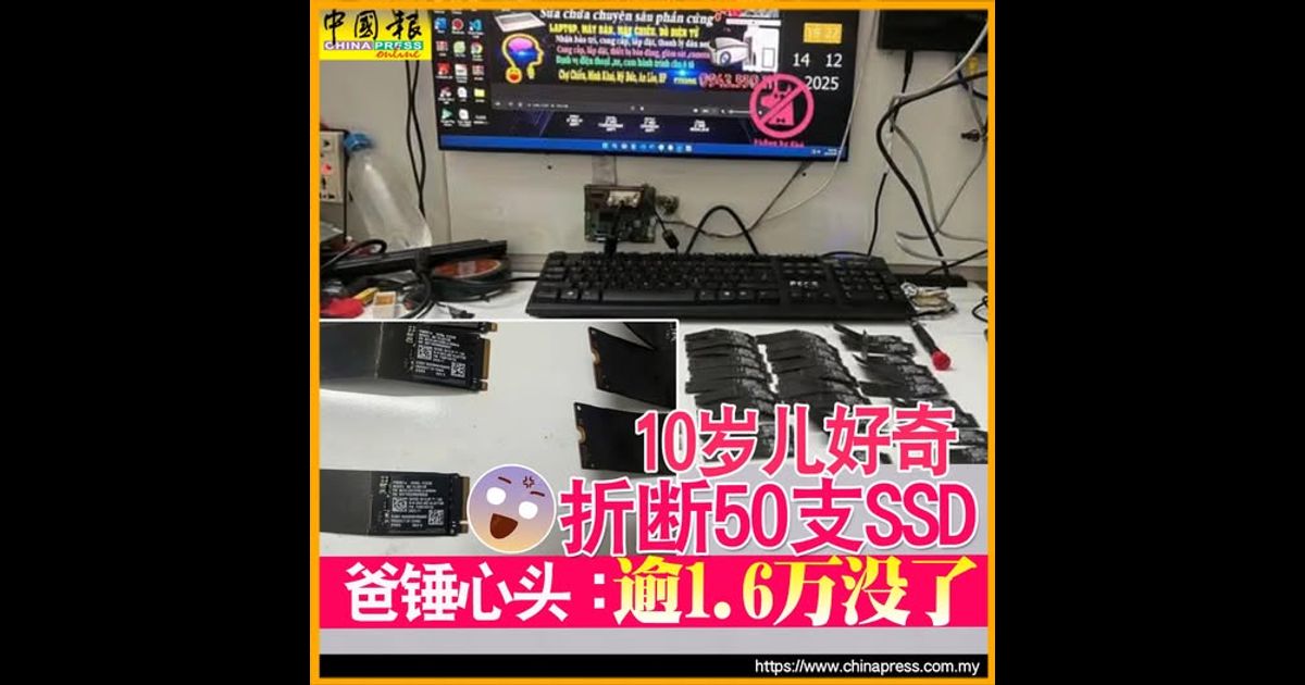 (河内18日综合电)越南有家长近日在面子书群组发文,指10岁儿子因好奇心驱使,竟折断50支 Samsung PM991a NVMe M.2固态硬盘(SSD)。这批SSD每支容量为512GB,总计损毁2万5600GB储存空间。该名家长估计损失达3000至4000美元(约1万2259至1万6346令吉)。