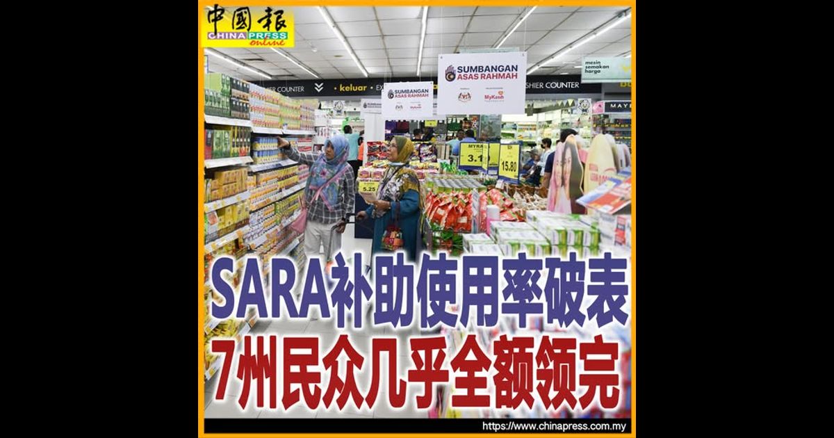 “至于发放给超过2200万名18岁以上大马公民的一次性SARA援助金,目前已有超过92%或逾2000万人已领取援助金,支出总额19亿1000万令吉。