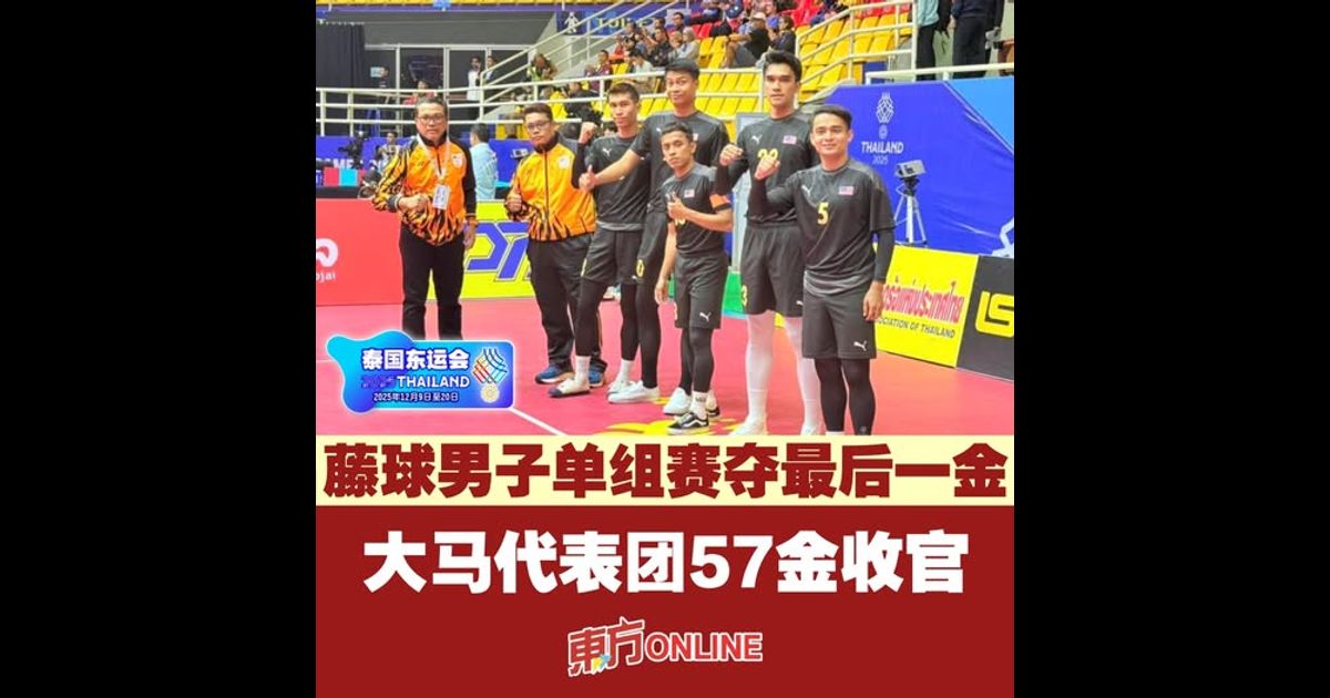 (曼谷20日讯)大马藤球队在第33届东运会再创佳绩,今日成功夺下男子单组金牌。这不仅为大马代表团拿下本届赛事的最后一枚金牌,也让大马时隔八年再度在该项目登顶。