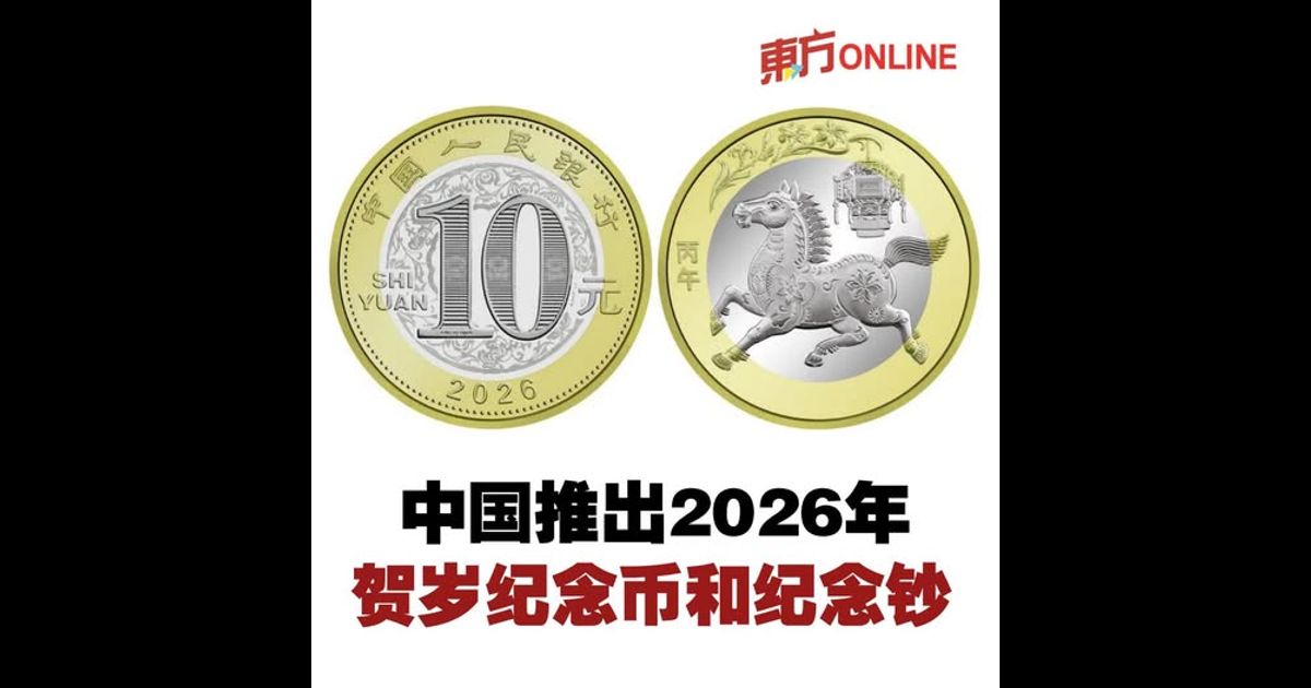 (北京20日讯)中国中央银行人民银行定于今年12月22日起,陆续发行2026年贺岁纪念币和纪念钞,其中双色铜合金纪念币一枚,纪念钞一张,金质纪念币一枚,银质纪念币一枚,均为中国法定货币。
