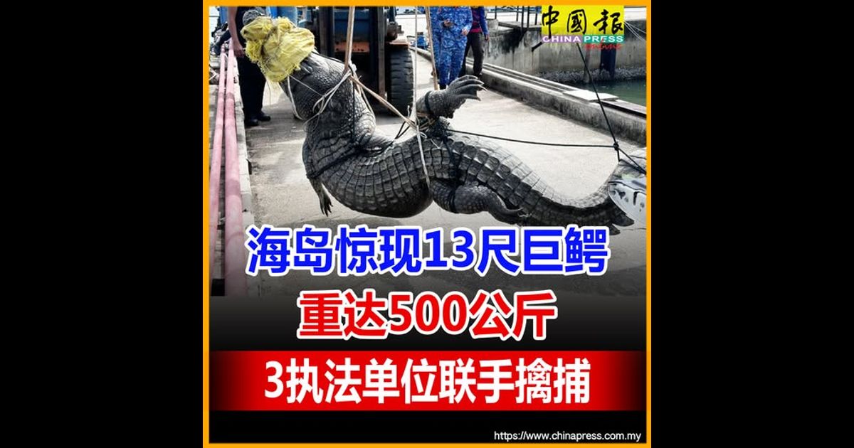 (山打根20日讯)海岛上惊见一条500公斤重、13尺长的巨鳄,最终出动3个执法单位到场联手擒捕鳄鱼!