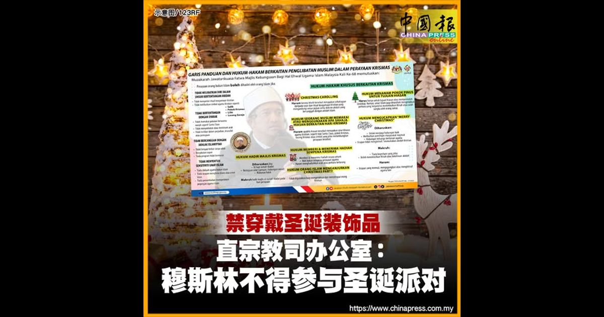 (吉隆坡20日讯)联邦直辖区宗教司办公室强调,穆斯林不允许穿戴或使用任何与圣诞节有关的装饰品。