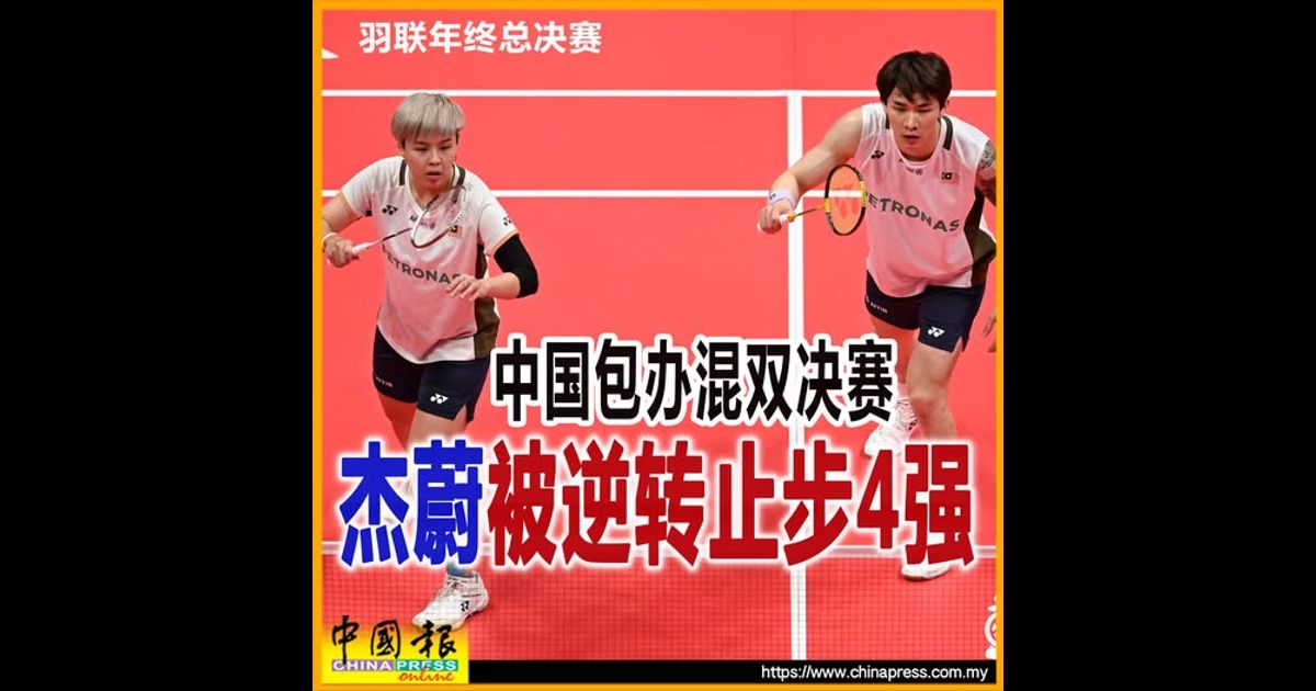 世界羽联年终总决赛下午阶段比赛开打,混双世界冠军的陈堂杰与杜依蔚在半决赛迎战中国“蒋魏组合”蒋振邦与魏雅欣,也是双方的第7次交手。