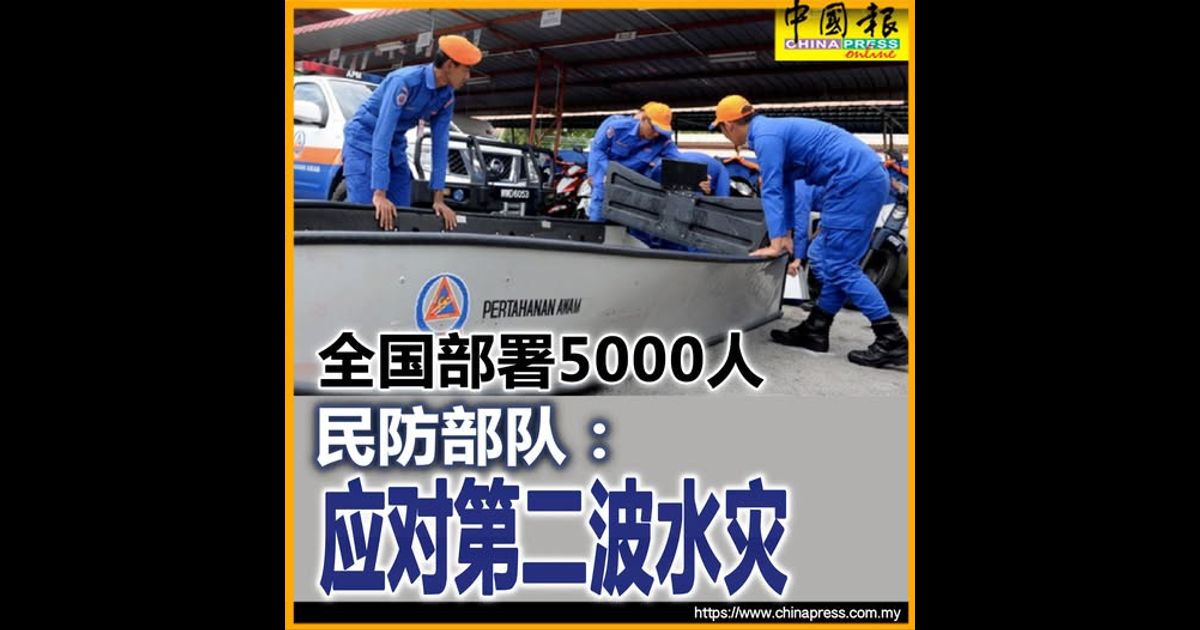 (哥打丁宜21日讯)民防部队训练管理组主任艾芬迪阿里上校指出,民防部队已在全国安排3000至5000名人员,随时准备应对东北季候风后,可能出现的第二波水灾。