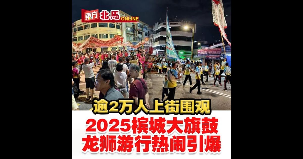 (槟城21日讯)槟城年度文化盛事2025年大旗鼓龙狮游行于周六晚在乔治市盛大登场,超过2万名民众与游客沿街围观,街道一度人潮汹涌,热闹非凡。