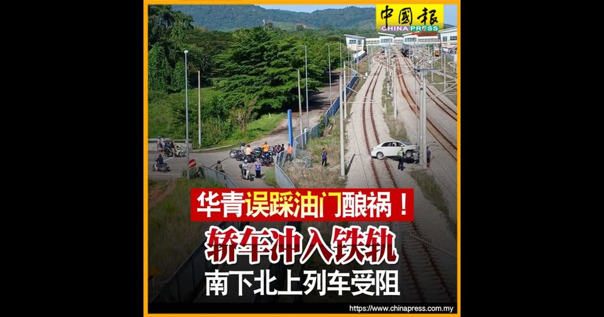(淡边22日讯)普罗士邦淡边火车站发生一起罕见交通事故,一辆由华裔青年驾驶的轿车,疑误踩油门,猛撞围篱及驳电箱,最终卡在铁轨上,导致南下北上的列车班次受阻!