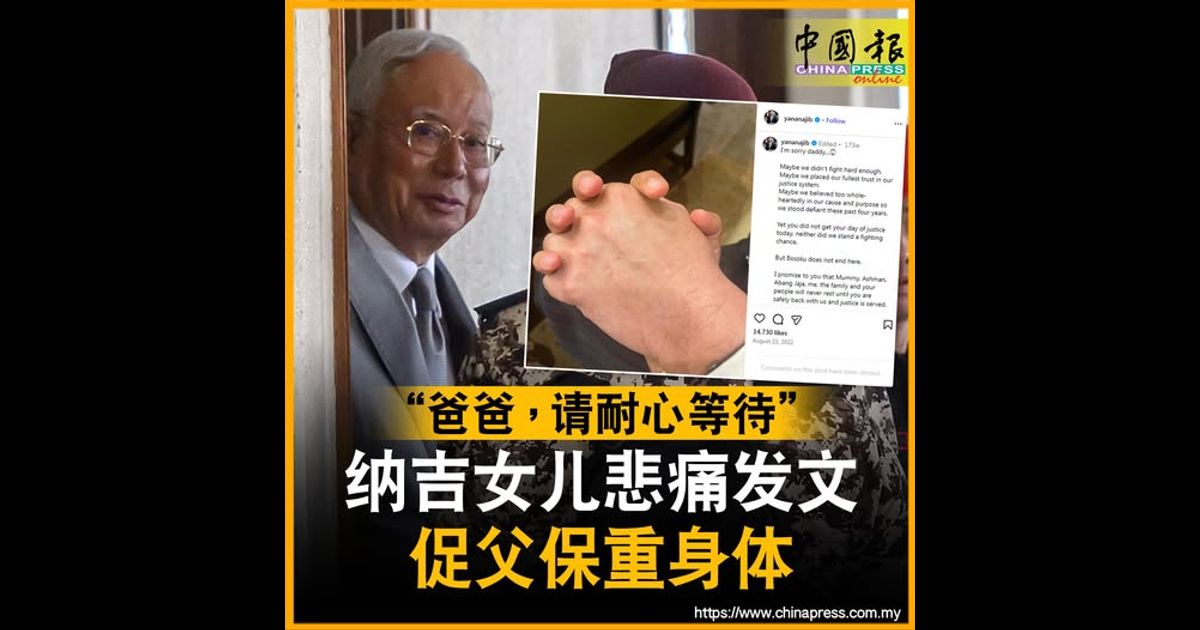 “爸爸,请耐心等待” 纳吉女儿悲痛发文 促父保重身体
