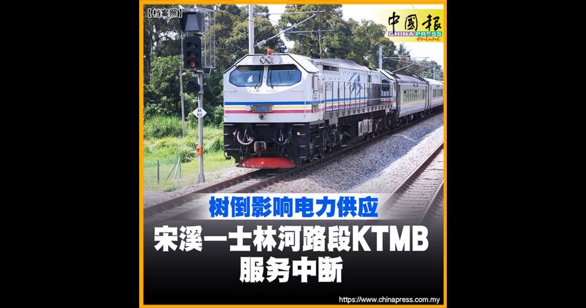 (吉隆坡22日讯)马来亚铁道公司(KTMB)指出,该公司宋溪(Sungkai)—士林河路段发生树倒事故影响电力供应,导致电动火车(Komuter)与双轨电动火车(ETS)服务出现中断。
