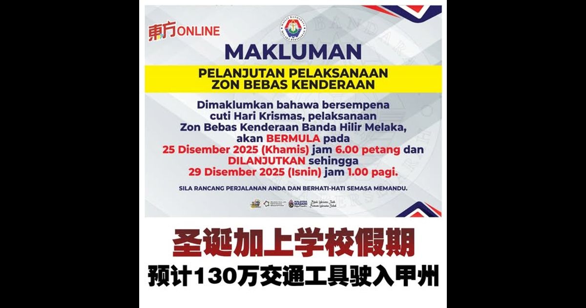 (马六甲24日讯)随着学校长假与圣诞节来临,马六甲车流量将大增,警方预计在这段期间迎来130万交通工具。