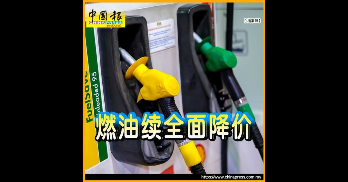 (吉隆坡24日讯)最新一周燃油价格出炉,无补贴RON 95、RON 97和半岛柴油零售价再次全面下调!