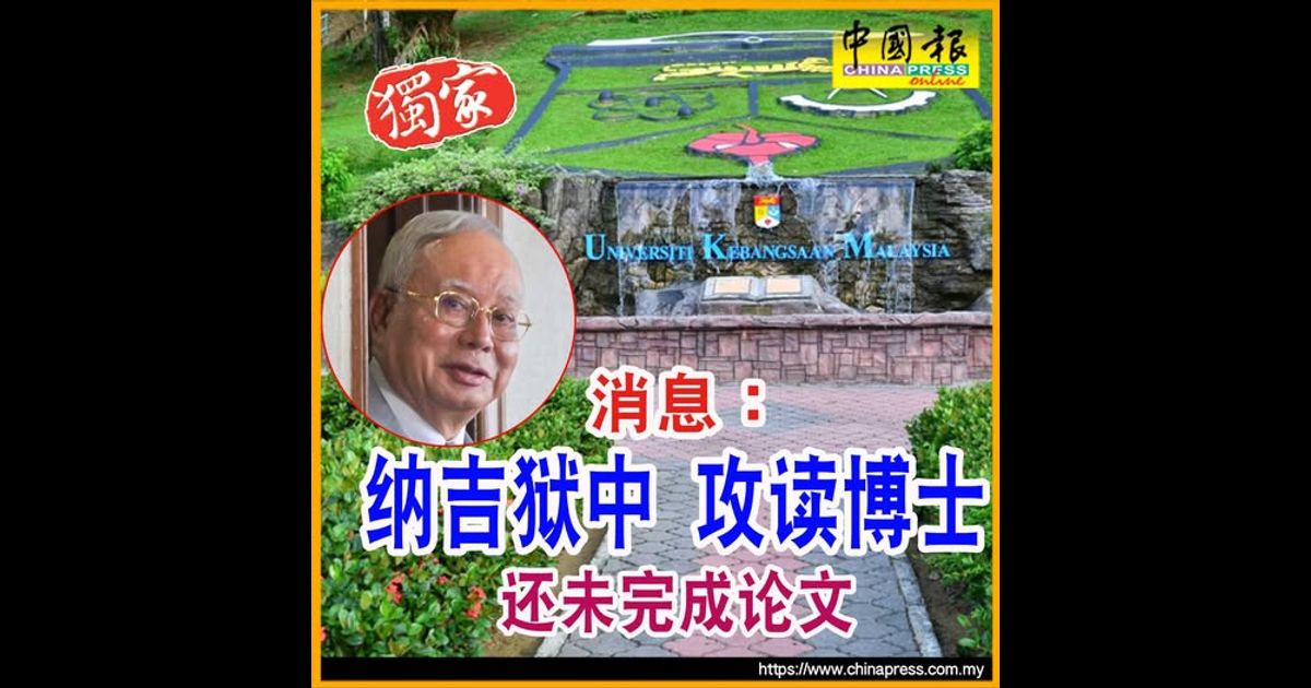 消息人士向《中国报》证实,纳吉的博士论文内容,是与经济转型主题有关。