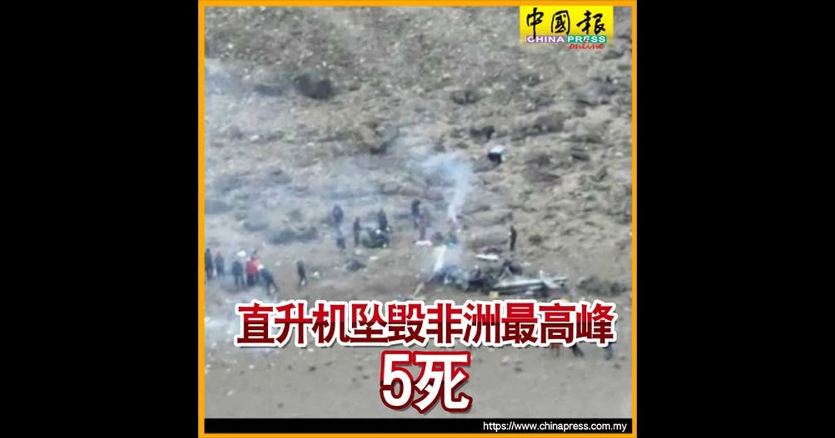 (坦桑尼亚·多多马25日综合电)一架执行救援任务的直升机,在当地时间24日在位于坦桑尼亚境内的非洲最高峰乞力马扎罗山上坠毁,机上5人全部遇难。