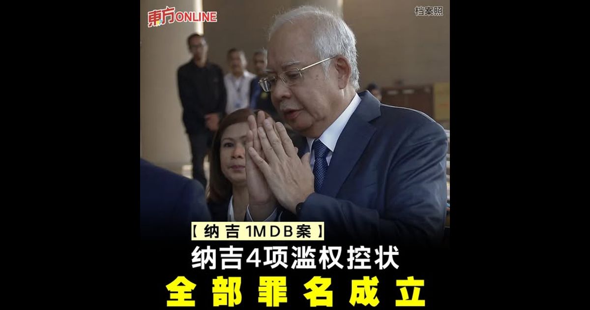(布城26日讯)前首相拿督斯里纳吉涉及的一马公司案今日下判,承审法官拿督柯林劳伦斯裁定,纳吉因挪用一马公司23亿令吉资金,被判4项滥权罪名,全部成立。
