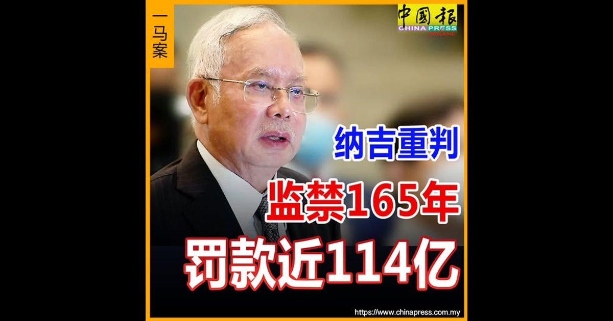 (布城26日讯)高庭今晚9时05分宣判,前首相拿督斯里纳吉被控挪用一马发展公司(1MDB)逾22亿7000万令吉资金的4项滥权和21项洗黑钱罪名全部成立,共判处监禁165年和罚款近114亿令吉!
