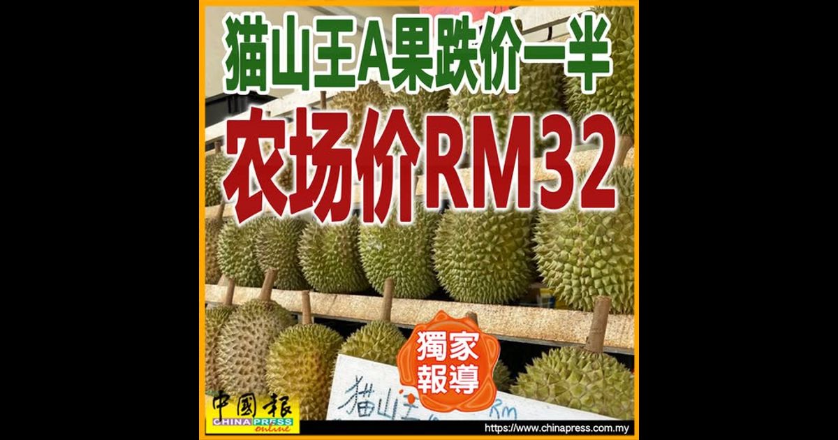 (吉隆坡26日讯/独家报导)大马榴梿出口商会会长陈踺指出,尽管本地榴梿尤其是猫山王的产量有所增加,但市场需求未能同步增长,加上邻国也以“猫山王”名义出口抢占海外市场,导致价格从去年同期每公斤约80多令吉,跌至目前每公斤约30多令吉。