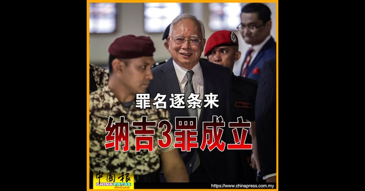 9:05PM 高庭今日宣判,前首相拿督斯里纳吉被控挪用一马发展公司(1MDB)逾22亿7000万令吉资金的4项滥权和21项洗黑钱罪名成立,刑罚一共是监禁165年和罚款逾113亿令吉。
