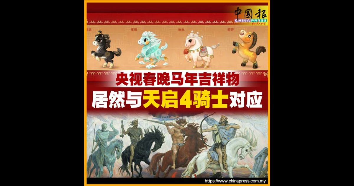 (北京27日综合电)中国官媒《央视》2026春晚,为了迎接马年设计出4个马年吉祥物,却在网络上疯传是和代表末日灾厄的“天启4骑士”对应。
