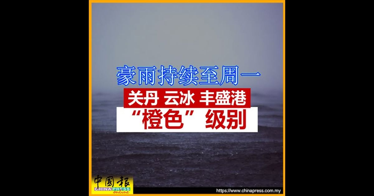 (吉隆坡27日讯)气象局发出连续下雨警报,彭亨关丹与云冰,以及柔佛丰盛港被列入“严重”的橙色级别,豪雨料持续至下周一(29日)。