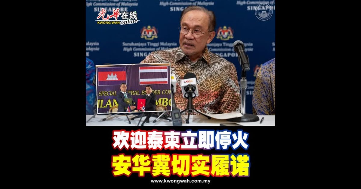 首相拿督斯里安华对柬埔寨与泰国同意从周六中午(当地时间)起立即停火,终止所有边境敌对行动表示欢迎,从而让自本月7日再度爆发的冲突画上休止符。