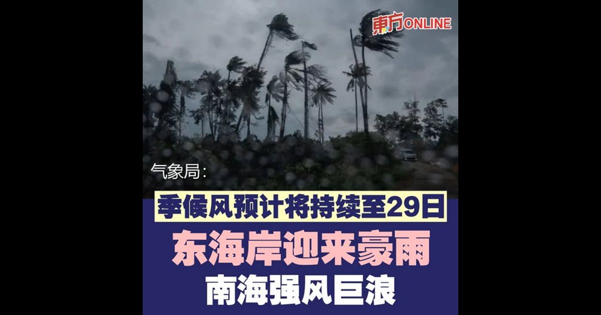 (吉隆坡28日讯)大马气象局指出,根据最新的气象模型的分析表明,目前的季候风预计将持续至29日。在此期间,大马半岛东部地区可能出现持续强降雨,南中国海地区则可能出现强风和巨浪。