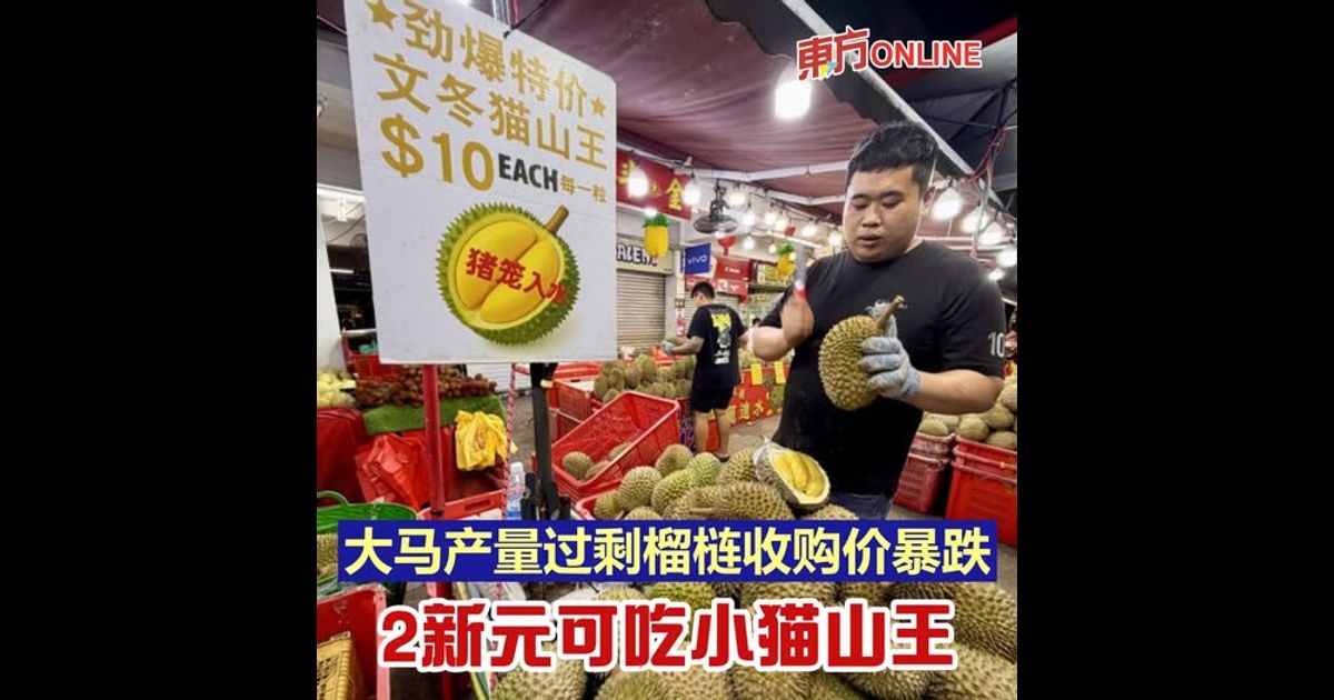 大马产量过剩榴梿收购价暴跌 2新元可吃小猫山王
