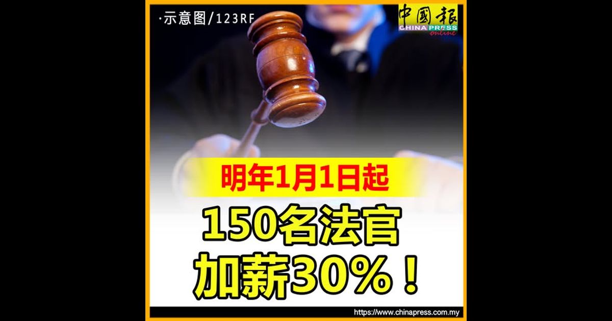 (吉隆坡29日讯)国内150名法官从明年1月1日起获30%加薪。