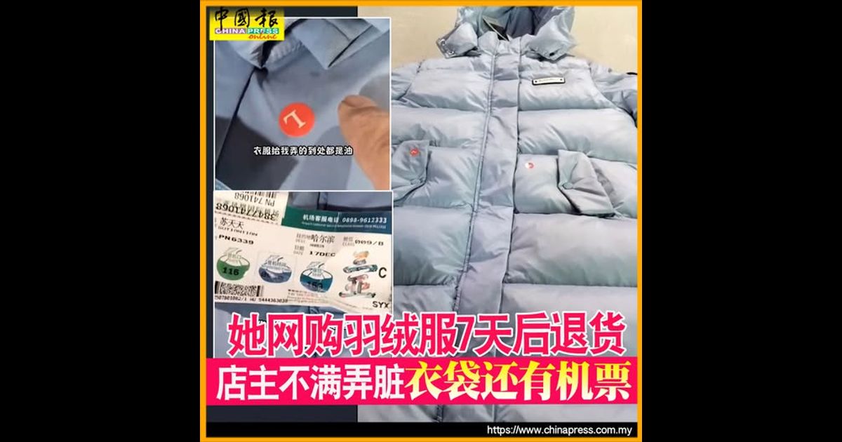 (北京30日综合电)中国网购平台的“仅退货”政策,惹来许多民众贪便宜白嫖,用完人家商品便退货退款。近日有网店投诉,有海南的女客户,买入长款羽绒服7天后退货,衫内满布油污外,衣袋还有去哈尔滨的机票。