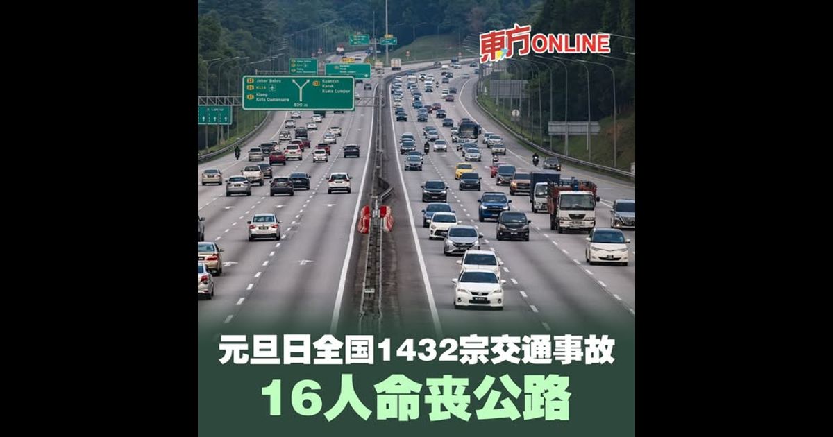 (吉隆坡2日讯)全国元旦日发生1432宗交通事故,造成16人命丧公路!