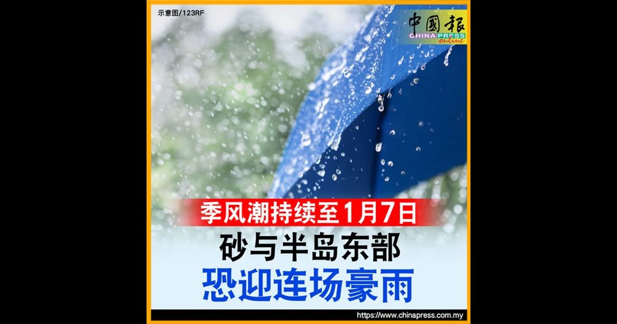 (吉隆坡2日讯)气象局指出,最新天气预报模型分析显示,季风潮(luruan monsun)预计会持续至1月7日,而这可能会对砂拉越和半岛东部带来持续豪雨。