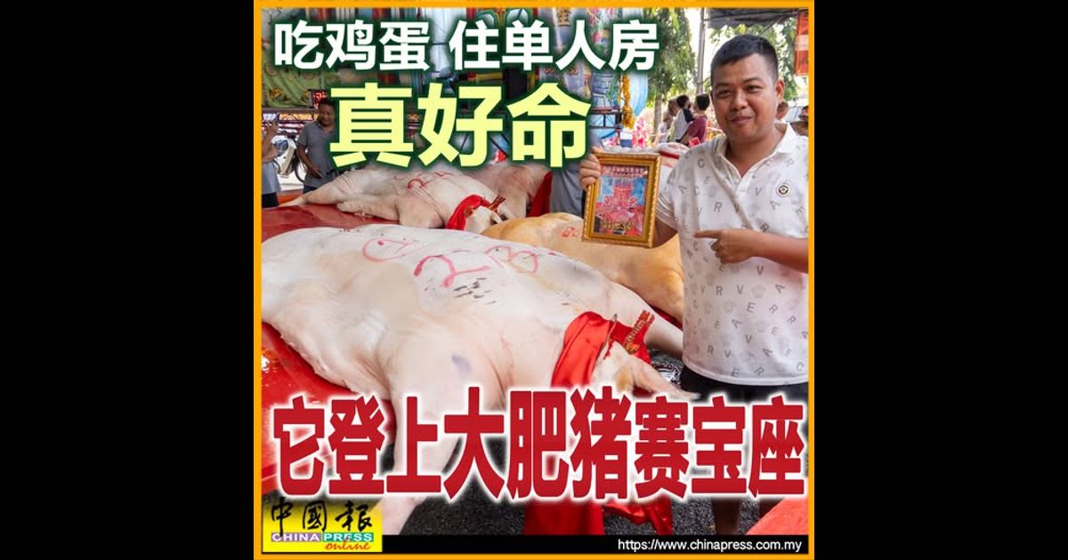 (槟城3日讯)属于丹麦白种、重达273.6公斤大肥猪,赢下由峇都眼东莲清宫举办的大肥猪竞赛冠军。