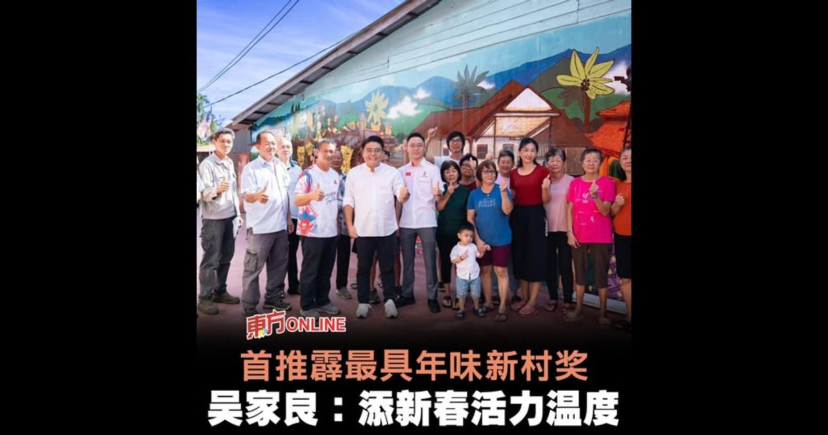 (怡保3日讯)年关将近,霹雳州行政议员吴家良宣布推出“2026年霹雳州最具年味新村奖”,鼓励各地新村村委会发挥创意,动员村民共同为新村增添新春氛围,让新村在农历新年期间更有活力、更有温度。