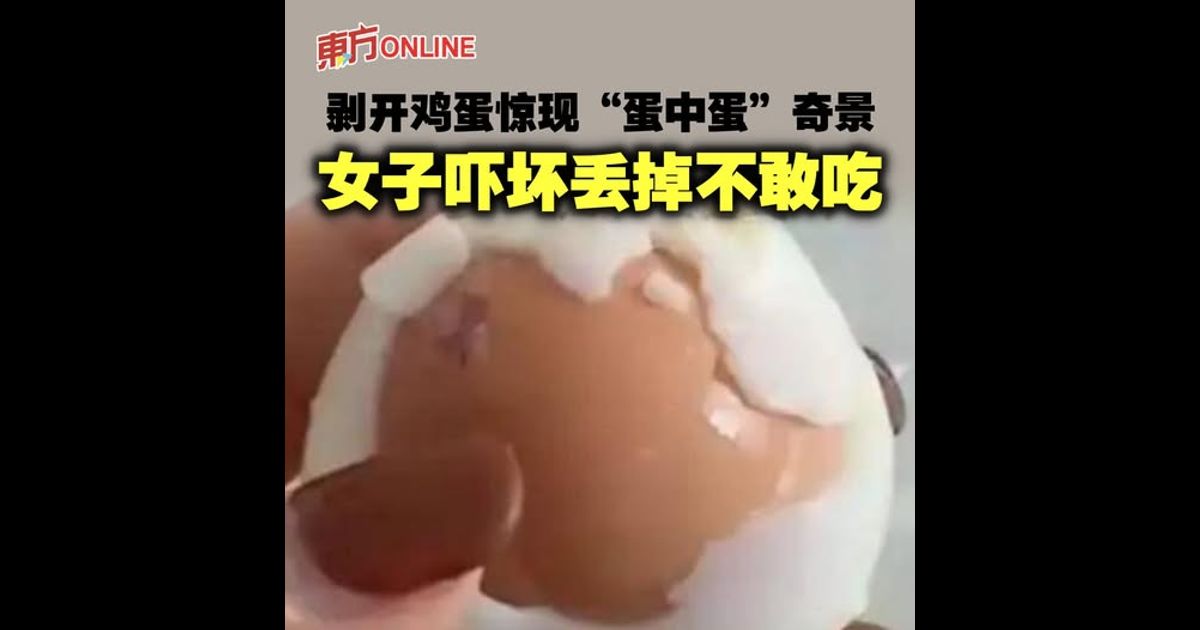 荔枝新闻报导,女子透露,当时把鸡蛋剥开后,赫见蛋白中包裹著一颗完整鸡蛋,让她相当惊讶,遂将事件分享上网。