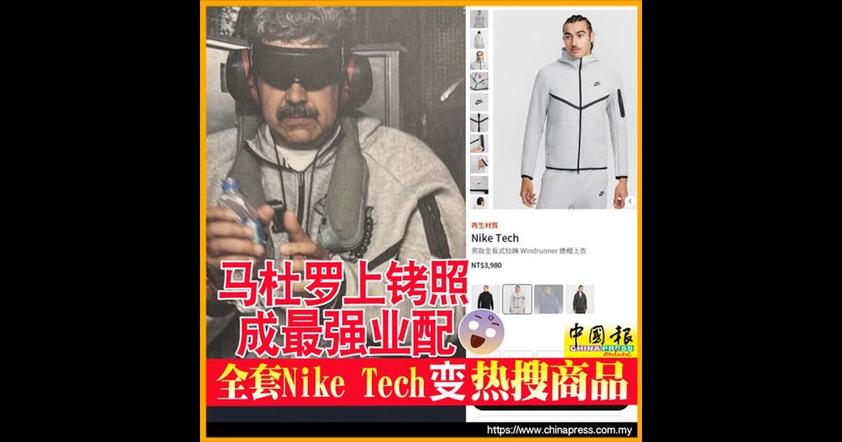 除了引发地缘政治讨论外,眼尖网友还注意到,马杜罗穿的是全套Nike Tech服装,相关搜寻量意外暴增,网友笑称“Nike成为最大赢家”。
