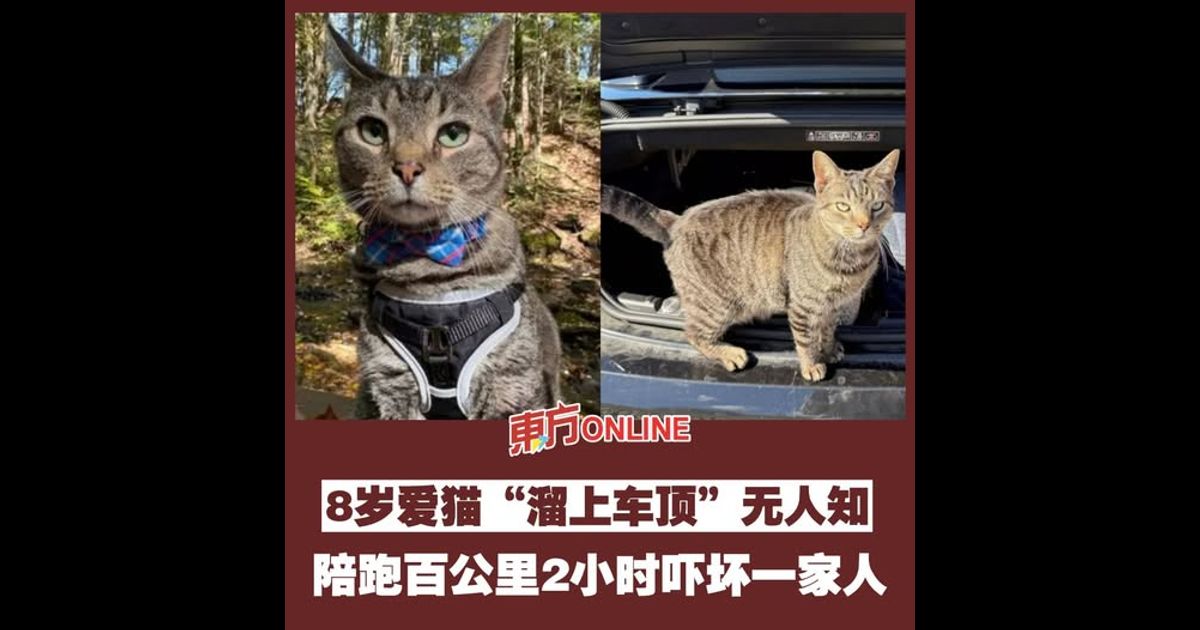 8岁爱猫“溜上车顶”无人知 陪跑百公里2小时吓坏一家人
