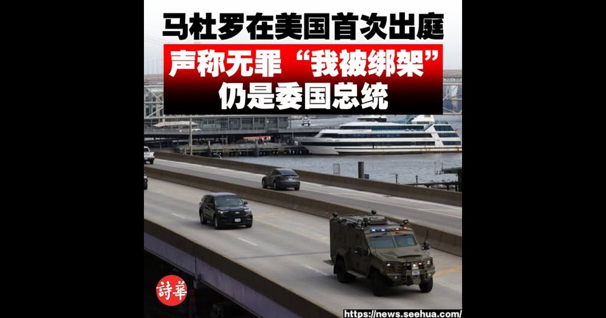 (纽约6日讯)由美国强行控制的委内瑞拉总统马杜罗及其妻子于当地时间周一,在纽约南区联邦地区法院首次出庭接受庭审。在约40分钟的庭审过程中,马杜罗表示,自己是“被绑架的”、“我无罪”,拒绝美方对其一切指控。马杜罗强调,他仍然是委内瑞拉总统。