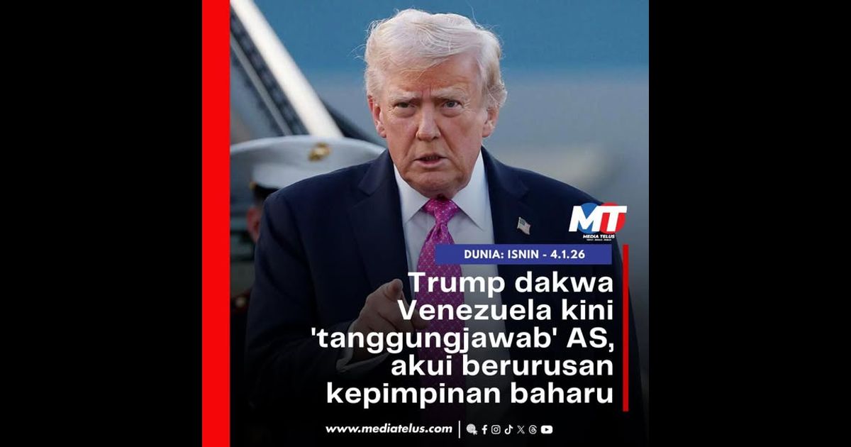 WASHINGTON 4 Jan – Presiden Amerika Syarikat, Donald Trump, pada Ahad mencetuskan kontroversi apabila menyatakan bahawa AS memikul tanggungjawab terhadap situasi di Venezuela susulan penahanan Presiden Nicolas Maduro, sambil mengesahkan Washington kini berurusan dengan kepimpinan sementara baharu di Caracas.