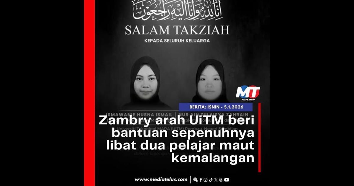 KUALA LUMPUR 5 Jan – Menteri Pendidikan Tinggi, Datuk Seri Dr Zambry Abd Kadir merakamkan ucapan takziah kepada seluruh ahli keluarga dua pelajar Universiti Teknologi MARA (UiTM) Kampus Rembau yang meninggal dunia dalam satu kemalangan petang semalam.