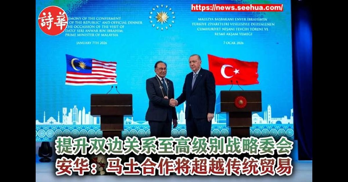 《马新社》报道,安华在与土耳其总统埃尔多安发表的联合声明中指出,此举体现两国强大的互信与信心,而深化合作也将超越传统贸易,以涵盖科技、国防、教育、研究及伊斯兰金融等新增长领域。