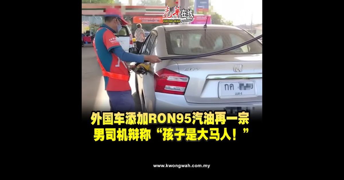 而拍摄视频的男子因此上前阻止,并称外国汽车不可以添加RON95汽油,而相关汽车男司机在沉默数秒后,辩称“孩子是这里的人!(大马人)”。