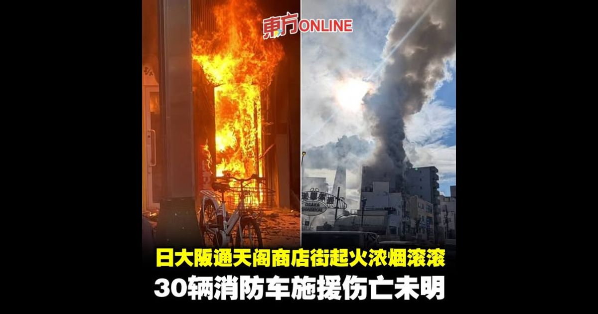 (大阪9日讯)日本大阪知名观光地标通天阁今日上午10时30分惊传火警,距离通天阁大约200公尺的附近商店街店铺起火,浓烟不断窜出。