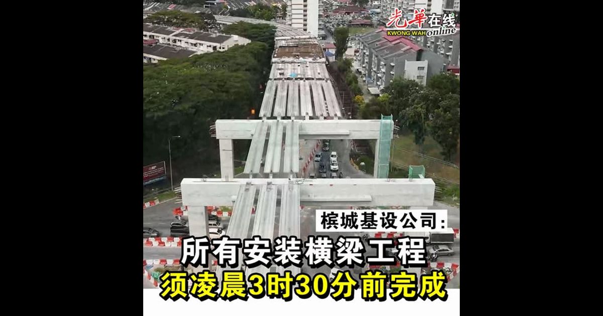 槟城基设有限公司(Penang Infrastructure Corporation)指出,为确保道路使用者安全,并尽量减少对交通影响,所有安装横梁工程必须在凌晨3时30分前完成;若无法在该时限内完成,将立即停止安装作业,以确保安全并让道路按时重开。