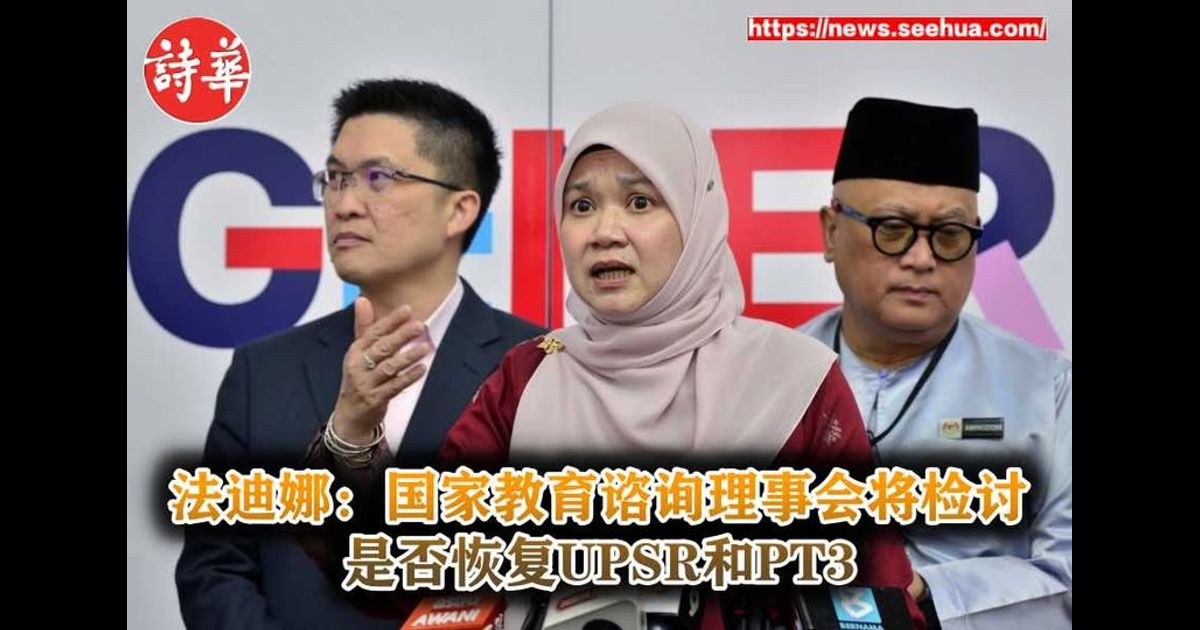 (布城9日讯)教育部长法迪娜表示,教育部将推动检讨是否有必要恢复小六检定考试(UPSR)及中三评估考试(PT3)。